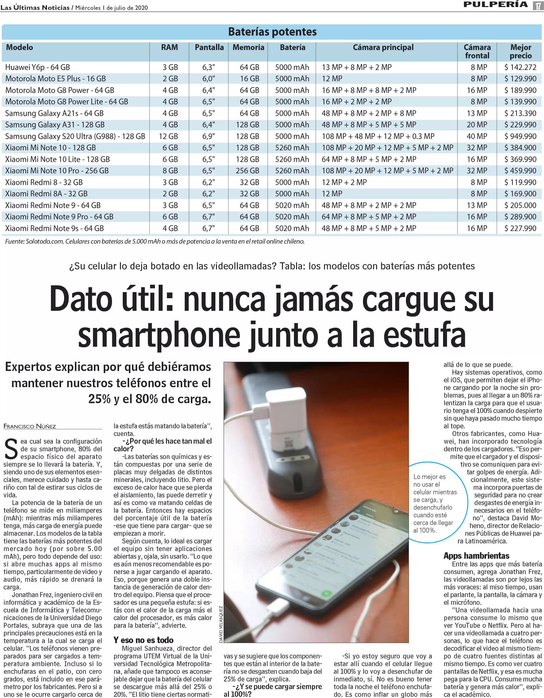 Dato útil: nunca jamás cargue su smartphone junto a la estufa